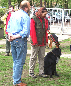 Ich habe mit Charly seit 2000 drei Begleithundeprüfungen abgelegt. Wir haben die Prüfungen immer bestanden, aber nie konnten wir eine Prüfung ohne einen gröberen Schnitzer beenden. Charly hat großen Spaß an der Unterordnung, deshalb hatte ich mir als Ziel gesetzt, einmal eine BH im oberen Punktebereich zu laufen. Das Potential war ja immer schon bei Charly vorhanden (wahrscheinlich habe ich mich als auch mal ein bißle dabbich angestellt). Am Wochenende war es dann endlich soweit. Ich konnte mir meinen Wunsch erfüllen. Charly hat bei unserer Frühjahrsprüfung die beste Prüfung von 12 Teilnehmern gezeigt und belegte somit den ersten Platz. Wir bekamen vom Leistungsricher lediglich einen Punkt für unruhiges Abliegen, einen für etwas zu langsames Sitz aus der Bewegung und einen für Loben bei Halt abgezogen. Sozusagen wäre es eine 58 Punkte Prüfung gewesen, aber ich würde jederzeit wieder an dieser Stelle loben, auch wenn es grad keine Grundstellung ist, falls ich der Meinung bin, der Hund braucht das Lob in diesem Moment. Hat er ganz toll gemacht mein Bub !!!!! | |