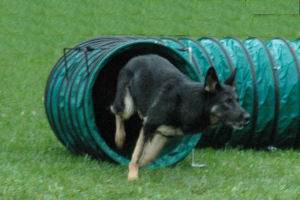 Agility Ein Hundesport, dessen Ursprünge in England liegen und der sich in den letzten Jahren einer immer größeren Beliebtheit erfreut. Leider ist es auch in diesem Sport so, dass Einflüsse wie Ehrgeiz und Konkurrenzkampf den Sport und den Spaß daran schnell mal in den Hintergrund treten lassen. Agility is fun" - so sollte es bleiben, auch wenn man diesen Hundesport turniermäßig betreibt. Um es einfach auszudrücken, sei gesagt, dass Agility mit dem Springreiten vergleichbar ist. Da die Belastung für den Hund nicht zu unterschätzen ist, sollte immer hundgerecht trainiert werden. Dies ist ein Grundsatz, der bei mir als Hundeführer und Trainer an oberster Stelle steht. Danach kommt gleich der Spaß für das Team, dann stellen sich die ersten Erfolge recht schnell von alleine ein. Der Agility Virus hat mich infiziert, als ich mit Charly die Begleithundeprüfung abgelegt hatte und weiterhin mit ihm arbeiten wollte. Bei meiner Recherche nach einer geeigneten Hundesportart, bin ich auf Agility gestoßen, zumal mich dies schon früher interessiert hatte. Tja, und dann nahmen die Dinge ihren Lauf. Mein Hundeverein (Verein der Hundefreunde Karlsruhe) kaufte einen eigenen Parcour, eine Trainerin wurde gefunden und los ging's. Recht bald besuchte ich Seminare und bereits ein Jahr später nahm ich mit Charly an den ersten Turnieren teil. Später kamen Trainerlehrgänge hinzu und mittlerweile habe ich nach bestandenem Trainerschein bereits selbst die ersten Teams ausgebildet. Auch Angie, mein Neufi-Mädel, hat großen Spaß am Agility. Ob ihrer Körpermaße und auch ihres Gewichtes, trainiert sie jedoch meistens auf niedriger Sprunghöhe, um die Belastung so gering als möglich zu halten. Deshalb wird sie auch nie in einer höheren Klasse als bei den Beginnern starten, da sie dort nicht so hoch springen muß, was sie zwar gerne täte, ich aber aus gesundheitlichen Gründen vermeide. Mit Arielle habe ich bereits im Welpenalter die Agilityausbildung angefangen und es ist eine Freude zuzusehen, mit welchem Eifer und welcher Freude ein Welpe an die Sache herangeht, sofern man Hund- und Altersgerecht arbeitet. | |