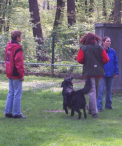 Ich habe mit Charly seit 2000 drei Begleithundeprüfungen abgelegt. Wir haben die Prüfungen immer bestanden, aber nie konnten wir eine Prüfung ohne einen gröberen Schnitzer beenden. Charly hat großen Spaß an der Unterordnung, deshalb hatte ich mir als Ziel gesetzt, einmal eine BH im oberen Punktebereich zu laufen. Das Potential war ja immer schon bei Charly vorhanden (wahrscheinlich habe ich mich als auch mal ein bißle dabbich angestellt). Am Wochenende war es dann endlich soweit. Ich konnte mir meinen Wunsch erfüllen. Charly hat bei unserer Frühjahrsprüfung die beste Prüfung von 12 Teilnehmern gezeigt und belegte somit den ersten Platz. Wir bekamen vom Leistungsricher lediglich einen Punkt für unruhiges Abliegen, einen für etwas zu langsames Sitz aus der Bewegung und einen für Loben bei Halt abgezogen. Sozusagen wäre es eine 58 Punkte Prüfung gewesen, aber ich würde jederzeit wieder an dieser Stelle loben, auch wenn es grad keine Grundstellung ist, falls ich der Meinung bin, der Hund braucht das Lob in diesem Moment. Hat er ganz toll gemacht mein Bub !!!!! | |