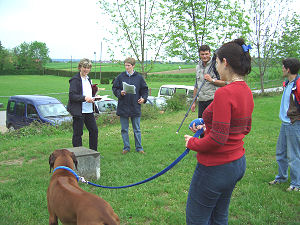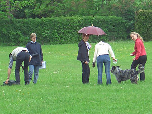 Am 21. Mai 2005 war ich mit Angie zum Fotoshooting für die Neuauflage des Buches "Der große Spiele-Spaß für Hunde" ( wird ca. im Frühjahr 2006 erscheinen) auf dem Gelände des VdH Lenninger-Tal in Dettingen. Dort wurden wir mit einigen anderen Hunden von Carola Kusch, einer Mitarbeiterin des Verlages und dem Fotographen erwartet. Leider war das Wetter nicht ganz so, wie wir uns das gewünscht hätten. Die Sonne ließ sich so gut wie gar nicht blicken. Bereits morgens hatte ich mich über das schreckliche Wetter aufgeregt, da ich eigentlich mit trockenen und sauberen Hunden zum Shooting wollte....aber es hatte nachts schon geregnet und entsprechend sahen die Hunde nach dem morgendlichen Gassigang aus. Da war erstmal Trockenreiben und Bürsten angesagt. Außerdem hatte ausgerechnet an diesem Morgen Scotty nichts besseres zu tun, als ausgiebig einer Maus hinterher zu buddeln...und das bei seinen weißen Pfoten *g*. Die gingen nach dieser Aktion glatt als dunkelbraun durch. |