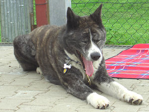 Bereits im Vorfeld hatte ich mitgeteilt bekommen, für welche Motive Angie vorgesehen war. Entsprechend ihrer Rasse und Rasseeigenschaften sollten dies die Zug- und Nasenarbeit sein. Angefangen haben wir dann allerdings mit Scotty, der gerade zur Pflege bei uns war und deshalb mit durfte. So einen Akita Inu sieht man ja auch nicht alle Tage. Scotty ist nun aber ein nicht so sehr temperamentvoller Hund, insofern schieden richtige Spiel-Motive mit ihm aus. Carola hatte deshalb beschlossen ein Motiv mit ihm aufzunehmen, bei dem das Loben des Hundes gezeigt werden sollte. Also machte ich mich dran, Scotty ausführlich zu loben und ordentlich durchzuknudeln. Wir scheinen das ganz gut gemacht zu haben, jedenfalls war der Fotograph begeistert. |