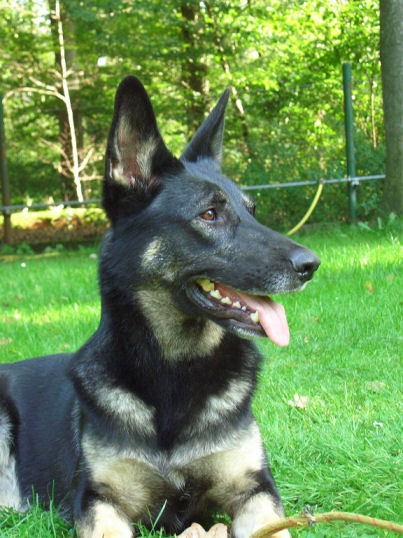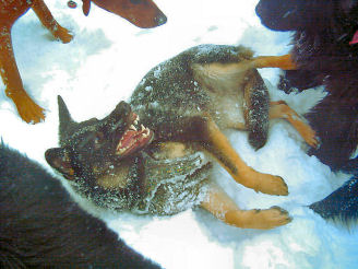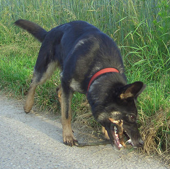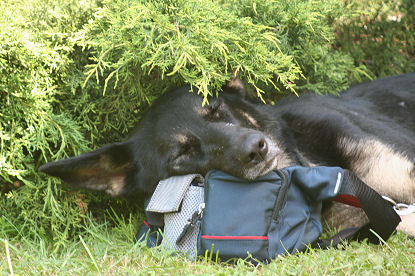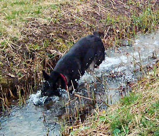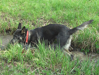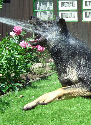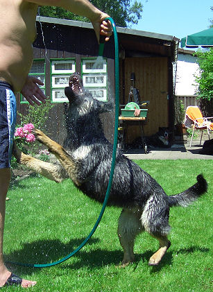 Und wenn es grad keine Stöcklen zum Spielen gibt, dann muß eben der Wasserschlauch herhalten, das kommt fast noch besser. | |