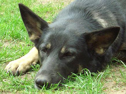 Leider hatte sich Jelli während der Pause nicht so erholt, wie ich mir erhofft hatte. Sie machte einen recht erschöpten Eindruck und legte sich sogar zu Beginn des Trainings auf den Platz, um noch ein wenig Schlaf nachzuholen. Ich beschloß, noch ein - zwei Übungen mitzumachen und dann aufzuhören, um sie nicht zu überfordern. Allerdings hatte ich die Rechnung ohne den Wirt gemacht, denn als es weiterging und nun temporeiche Sequenzen geübt wurden, war Zwergi mit einem Mal wieder voll da und stellte meine läuferischen Qualitäten auf eine harte Probe. Also konnten wir auch Teil zwei des Seminars gut mitmachen und haben einiges dazulernen können. Besonders gefreut hat mich, daß meine Kontaktzonenarbeit gelobt wurde. |